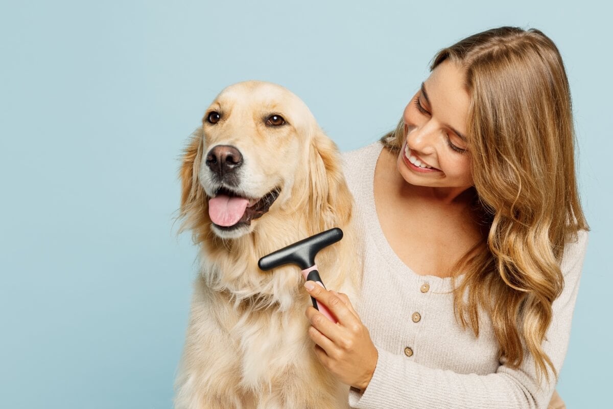 Use escovas adequadas ao tipo de pelagem: rasqueadeiras, pentes com dentes largos ou luvas de escovação.